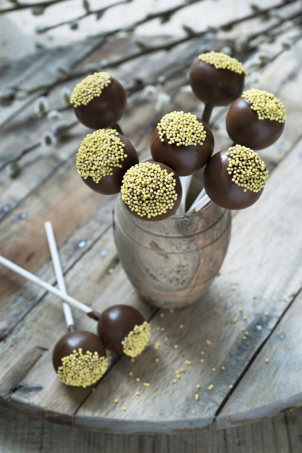 Cakepops zijn kleine bolletjes van cake, gedipt in chocolade